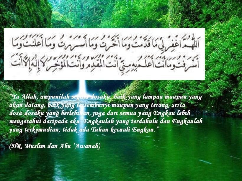"Ya Allah, sesungguhnya aku mohon kepada-Mu, agar dimasukkan ke syurga dan aku berlindung kepadaMu dari Neraka" (HR Abu Dawud dan Sahih Ibn Majah).